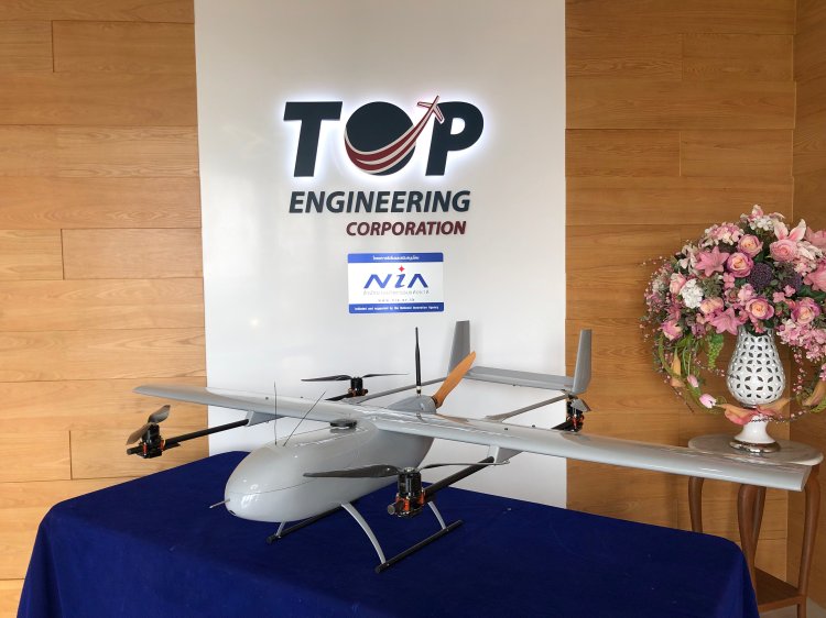 The Vertical Unmanned Aerial Vehicle (VTOL Fixed-Wing) was researched and developed by the local Thai engineers and team.